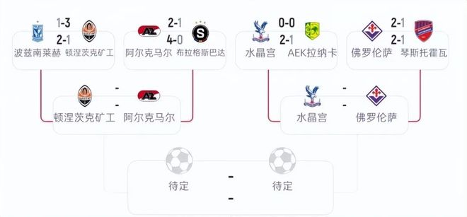 就此,八强全部产生,分别是顿涅茨克矿工、阿尔克马尔、水晶宫、紫百合、巴列卡诺、雅典AEK、美因茨、斯特拉斯堡。对阵方面顿涅茨克矿工会对上阿尔克马尔,水晶宫对上紫百合,巴列卡诺跟雅典AEK争夺一个晋级资格,美因茨战斯特拉斯堡。