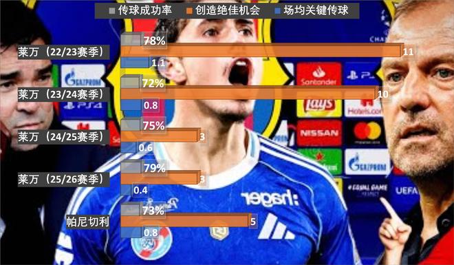帕尼切利跟莱万相比,主要是直塞球的能力不足,不过作为中锋的背身做球和横向撞墙,都有着不错的水准。