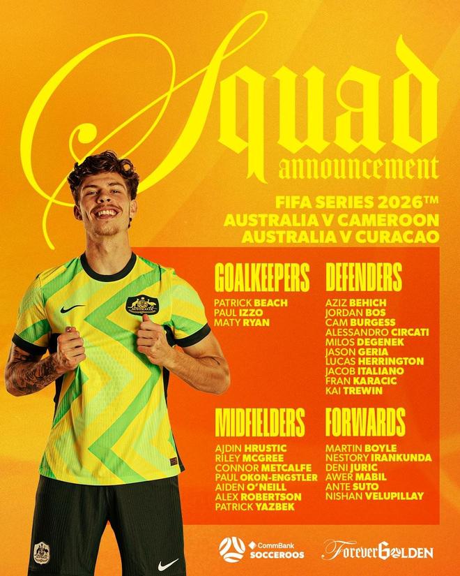 北京时间3月27日,澳大利亚队将出战本个国际比赛日的首场FIFA系列赛。本次澳大利亚队大名单中,有四名澳超球员入选,其中墨尔本城占两席。