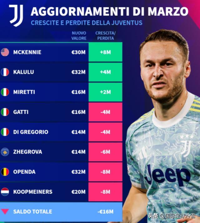 国米的身价下滑总值,比尤文图斯(下滑1600万)和AC米兰(下滑1000万)都高出很多,这引发了热议。