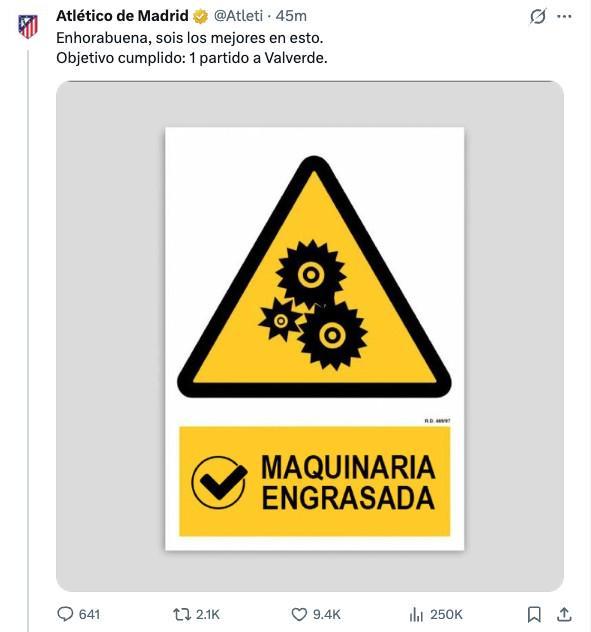 西班牙足协纪律委员会最终维持裁判比赛报告内容,对皇马中场巴尔韦德禁赛一场。马竞官方社媒表示:“恭喜,你们在这方面是最棒的,目标达成:罚巴尔韦德停赛1场。”