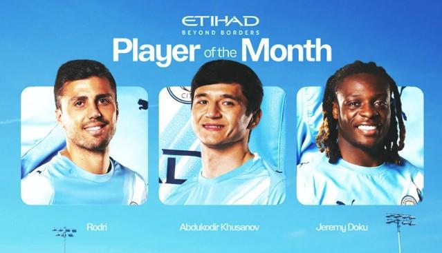 3月28日,曼城官方公布了3月队内最佳球员的候选,三名候选人分别是罗德里、胡桑诺夫和多库。曼城3月一共进行了7场比赛,战绩为3胜2平2负,在欧冠淘汰赛中遭到皇马双杀,但英联杯决赛击败阿森纳捧起冠军奖杯。