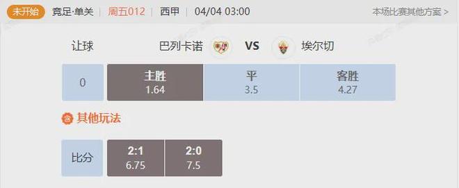 竞足 周五012 西甲巴列卡诺VS埃尔切