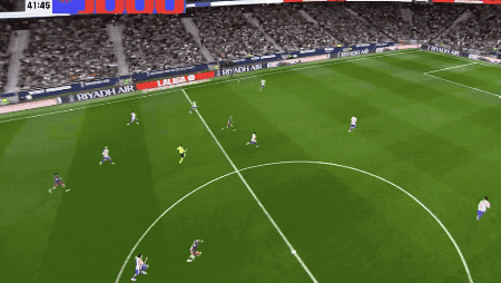 上半场补时阶段,接到加西亚的长传,亚马尔快速突破,在进入禁区前,尼科·冈萨雷斯倒地放铲,吃到第二张黄牌被罚下场。