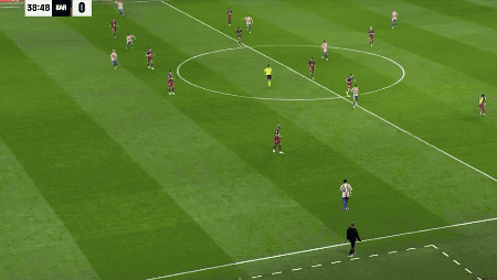 第35分钟,巴萨的配合行云流水,亚马尔插上的射门,击中了立柱和横梁的交界处。