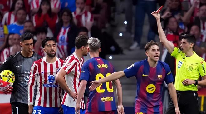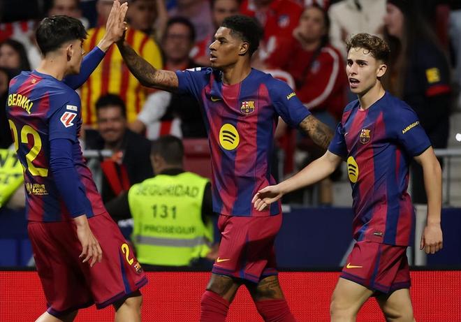 3分钟后拉什福德和奥尔莫打出配合,拉什福德的进球很快扳平了比分。上半场补时阶段,冈萨雷斯绊倒了亚马尔,裁判观看VAR之后出示了红牌,马竞不得不少打一人。下半场马竞死守,巴萨不断进攻,第87分钟坎塞洛摆脱防守球员打门,皮球被门将挡出,刚好扑到莱万身上,皮球被挡进了网窝,巴萨幸运的以2-1绝杀。