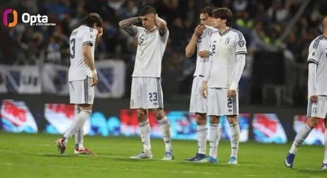 连续三届世界杯附加赛崩盘,连续两次关键战点球大战落败,意大利球员的心理防线,早已在一次次的失利中彻底崩塌。2018年对阵瑞典,球队全场狂攻却毫无办法,最终0∶1落败;2022年对阵北马其顿,球队全场压制,却在补时阶段被对手绝杀;2026年对阵波黑,球队熬到了点球大战,却最终倒在了十二码点前。