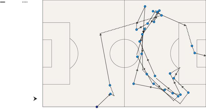 将这与巴黎圣日耳曼的统治力和观赏性形成对比。在一些观察者看来,克瓦拉茨赫利亚是我们这个时代最接近贝斯特的球员。他有那样的步态。他有那样的胡子。他还有那样的脚法——正如他在那个由27脚传递完成的进球中所展示的那样(如下所示),为德西雷-杜埃的首开纪录锦上添花。