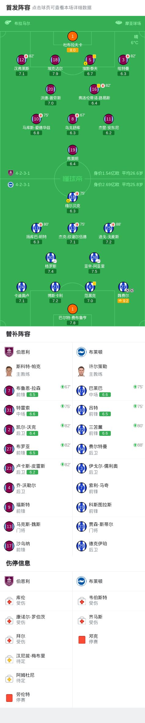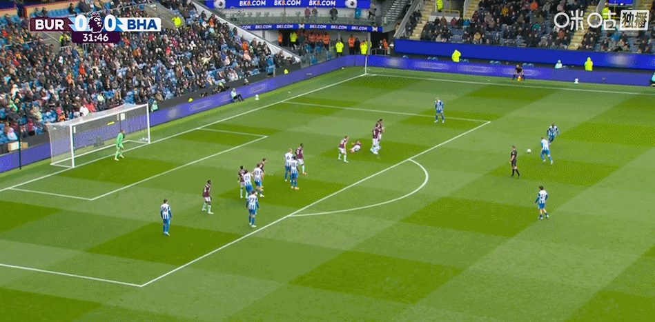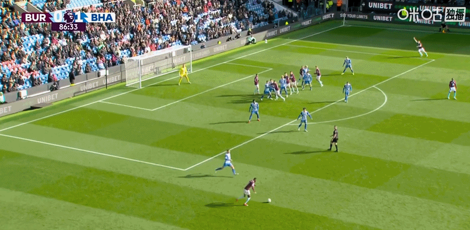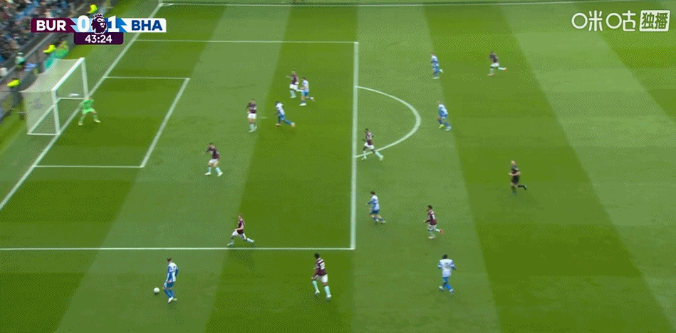 第43分钟,格罗斯左路传中,魏费尔推射建功!布莱顿1-0