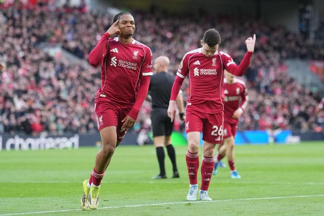 此役主场对阵富勒姆,利物浦凭借恩古莫哈和萨拉赫各入一球,2-0击败对手。