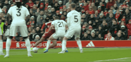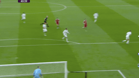 第40分钟,利物浦推动快速反击,恩古莫哈摆脱后传球,加克波架炮,萨拉赫上演标志性兜射破门。