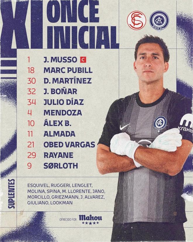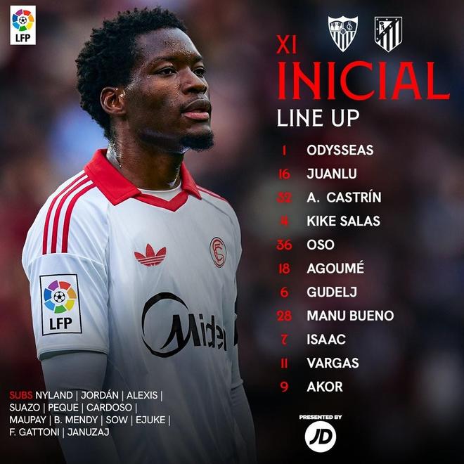 塞维利亚vs马竞:巴埃纳、瑟洛特出战,小蜘蛛替补