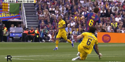 第20分钟,卡夫雷拉放倒加维,裁判示意犯规