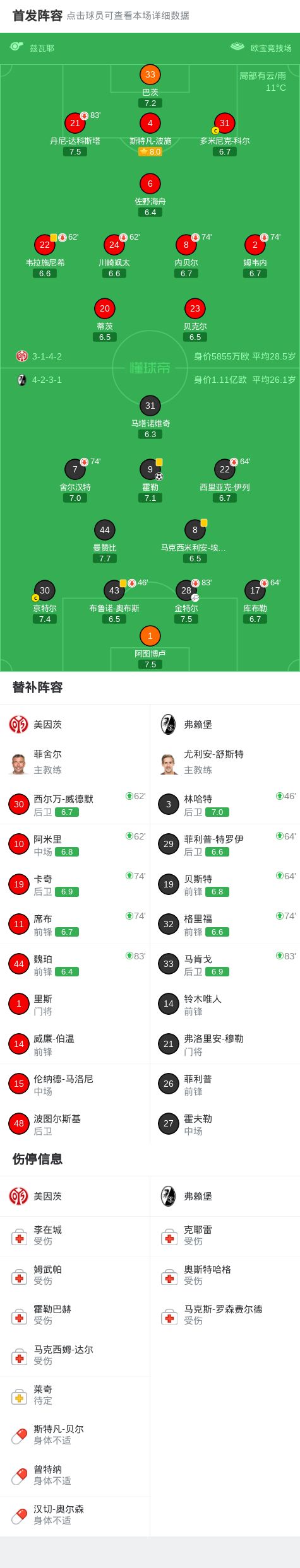 北京时间4月13日德国足球顶级联赛 联赛 第29轮,美因茨主场对阵弗赖堡。弗赖堡霍勒破门。最终比分美因茨 0-1 弗赖堡。